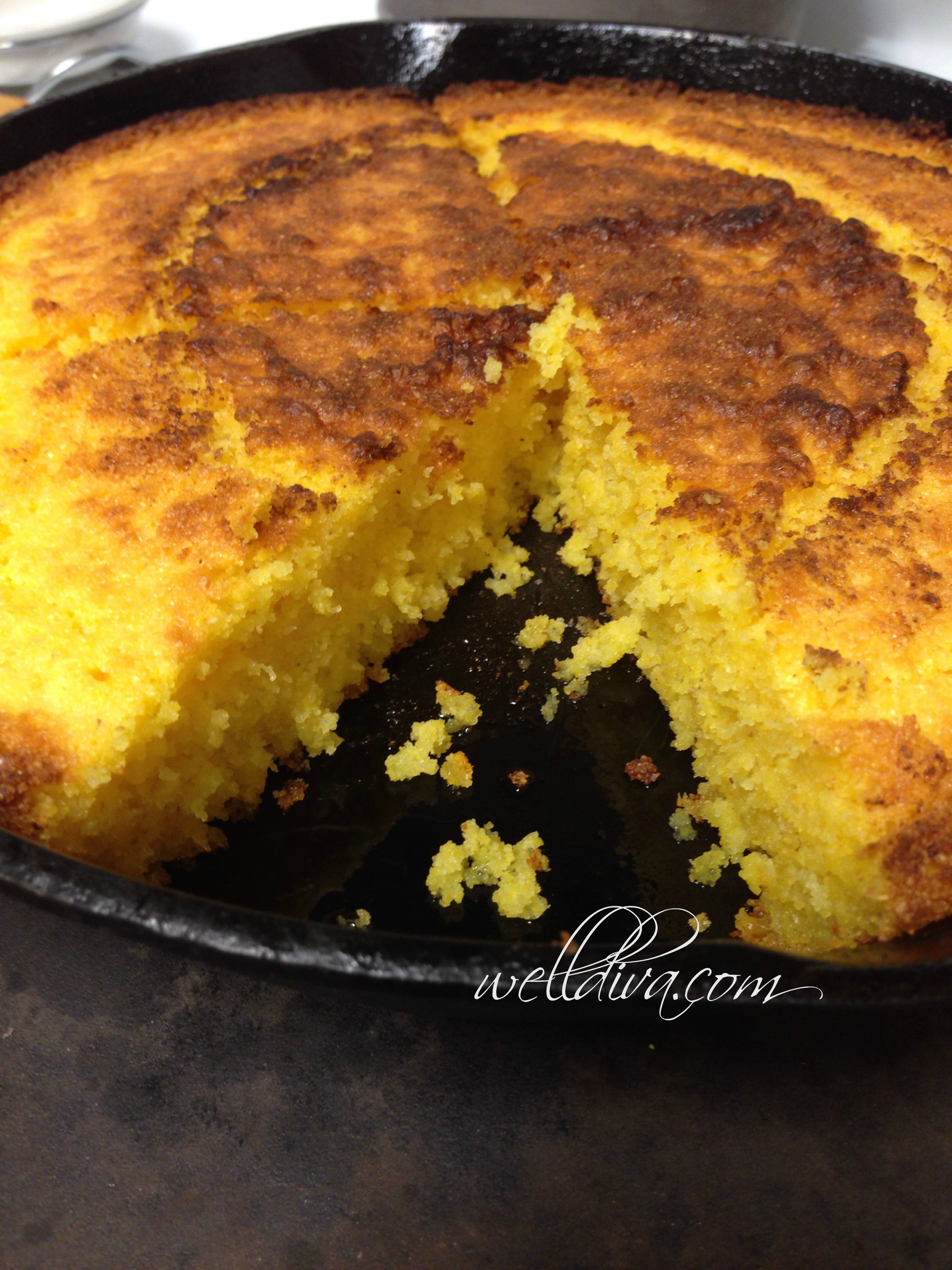 Aside from my fabulous sweet potatoes/yams, I’d have to say dressing is my all time favorite Thanksgiving dish. When I found out gluten was a problem for me, I had to figure out how to still enjoy my momma’s version of sage and onion flavored buttery cornbread dressing. So I skipped a couple of Thanksgivings with dressing to avoid the gluten in most cornbread recipes. Not cool. But now, I know how to have my cornbread and dressing too. My friend, Chef Cheryl from the Biggest Loser told me the secret. This recipe is adapted from Clabber Girl Baking Powder’s Southern Cornbread recipe. If you’d like to use this recipe to make your dressing just omit the sugar.